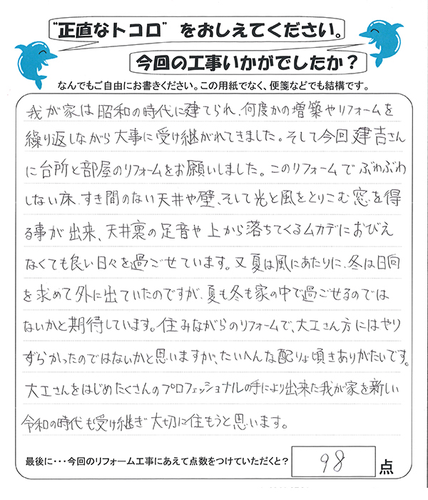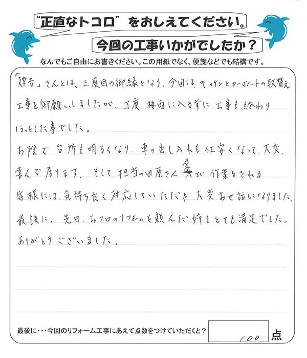 今回のリフォームありがとうございました。